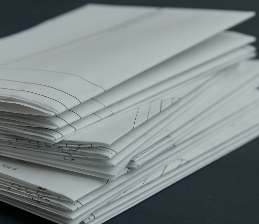 Uitgeprinte A0 pagina's worden opgeplooid verzonden.