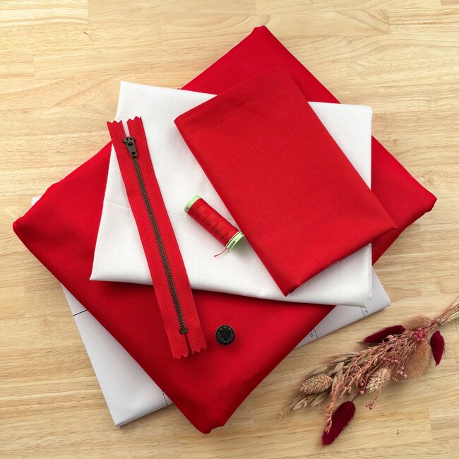 Voldoende stof om jouw broek te maken + alle fournituren die je nodig hebt: