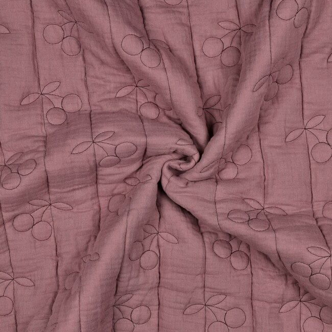 Beoordeel Double gauze matelassé kersjes - mauve