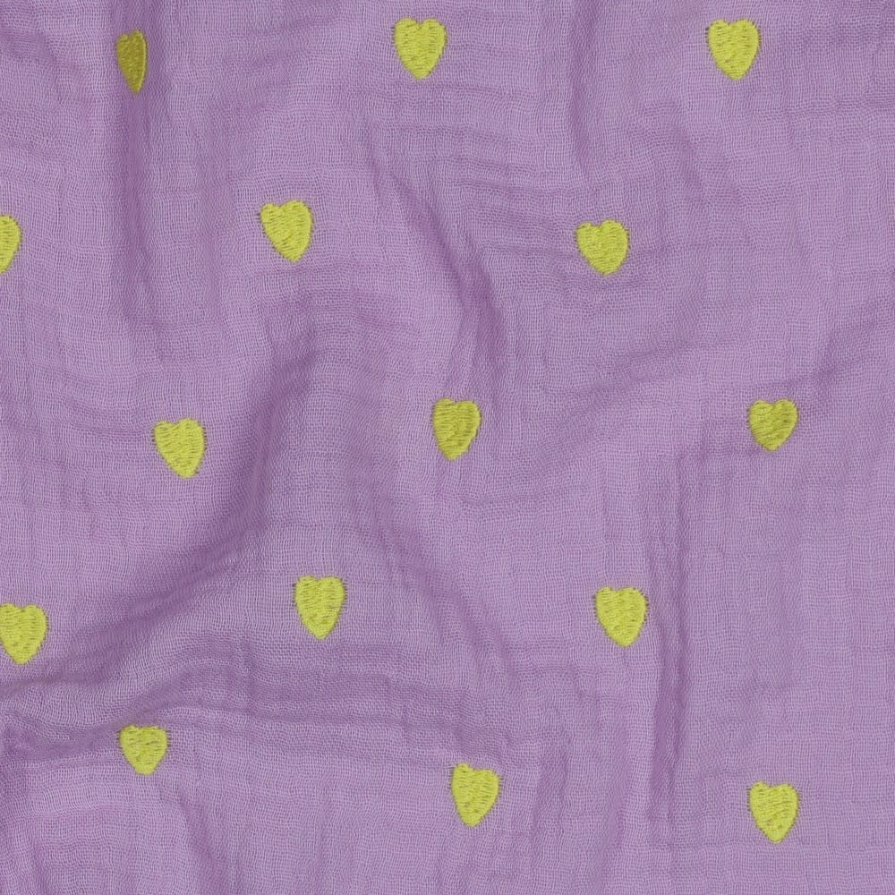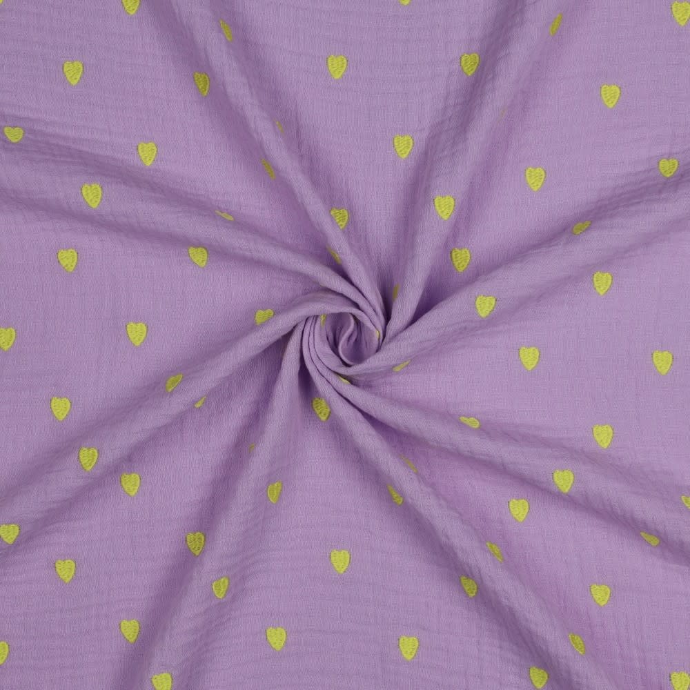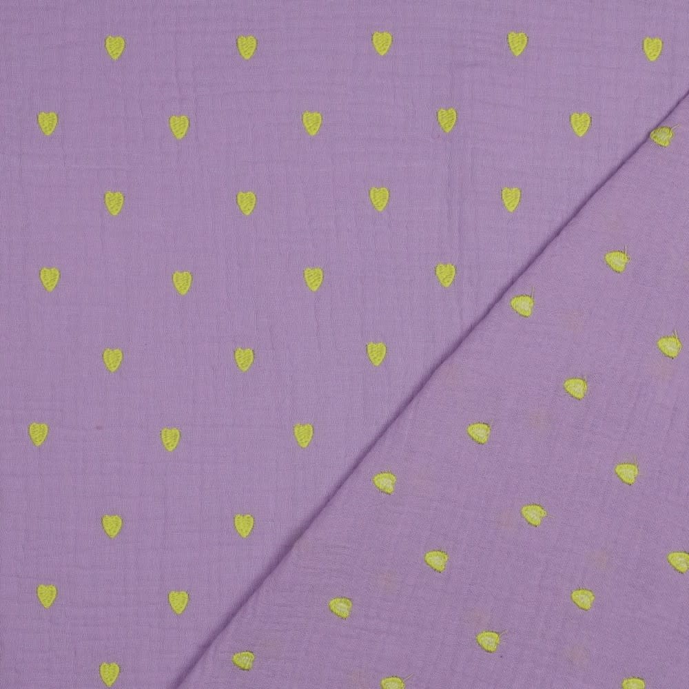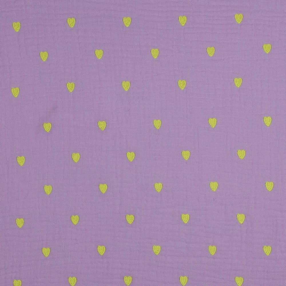 Geborduurde neon hartjes lila - double gauze