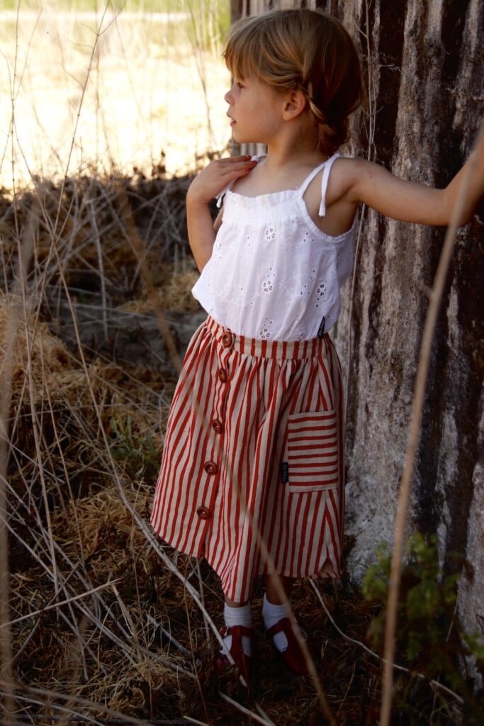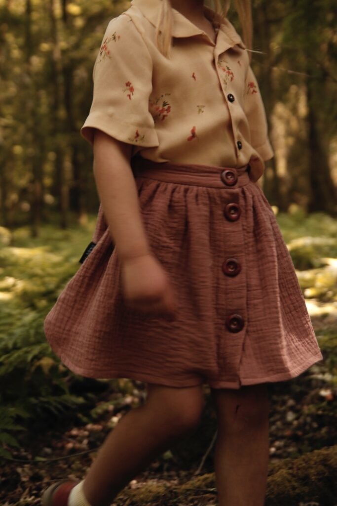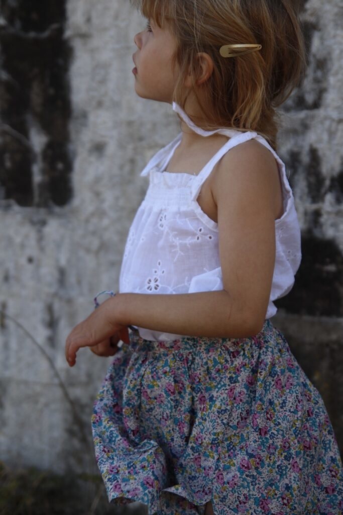 Het patroon van de Louiserok en -top werd ontworpen voor niet-elastische stoffen zoals katoen, double gauze, voile, linnen, crêpe, viscose, enz…