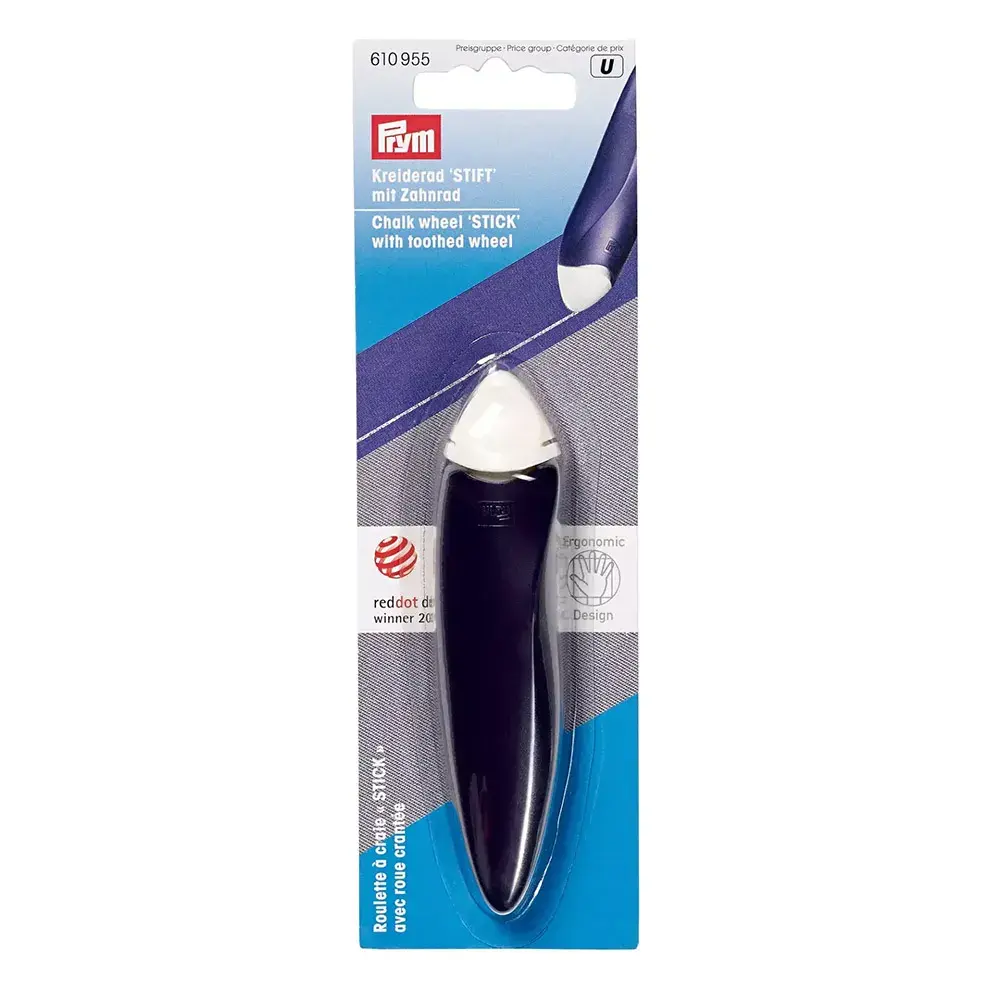 Het krijtradeerwiel 'stokje' uit de Prym Ergonomics-serie is een perfect hulpmiddel voor het markeren op alle stoffen, met hetzelfde comfort en gebruiksgemak met een pen! Met de krijtstift kun je moeiteloos krijtlijnen traceren die je gemakkelijk kunt verwijderen na het naaien door te wassen of gewoon door de stof te borstelen. Door het ergonomische ontwerp van de stick is het zowel geschikt voor rechtshandige als linkshandige gebruikers. Refil krijtpatronen zijn verkrijgbaar in wit of geel.