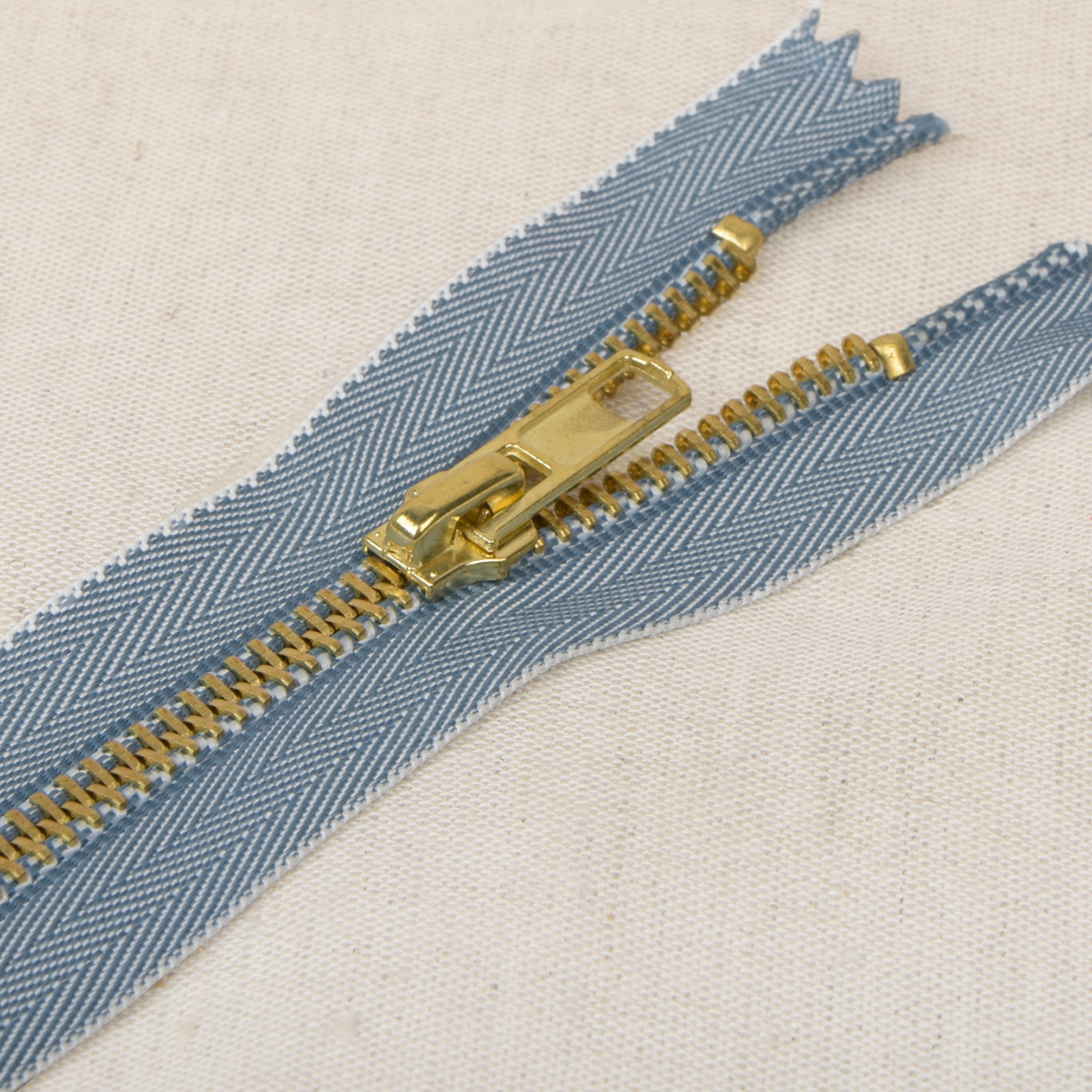 Deze jeansrits is een niet-deelbare metalen rits met een hoogwaardige afwerking. Het stevige lint met visgraatstructuur geeft de rits niet alleen extra sterkte, maar ook een mooie, authentieke look die perfect past bij denim en andere zware stoffen.