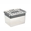 De afmeting van deze box is 300 x 200 x 140 mm. Deze box is beschikbaar in verschillende maten: 6 en 9 liter.
