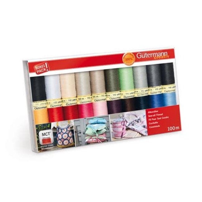 20 spoelen Allesnaaigaren 100 m in de populaire basiskleuren is de uitgebreide set voor iedereen die van naaien houdt.