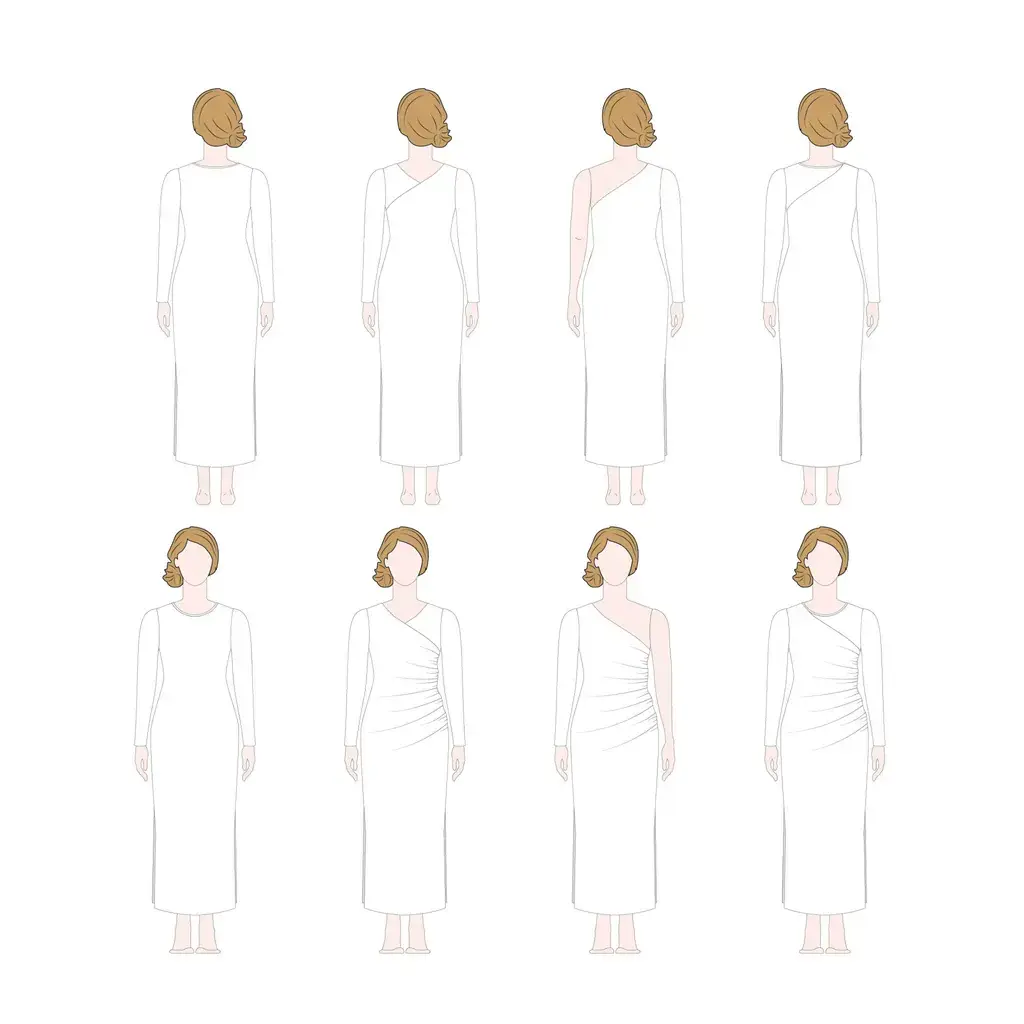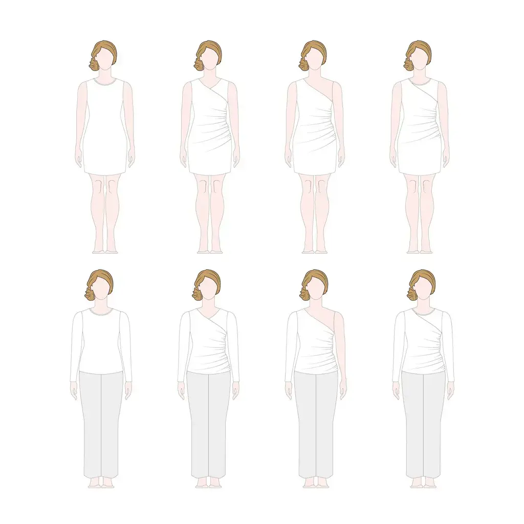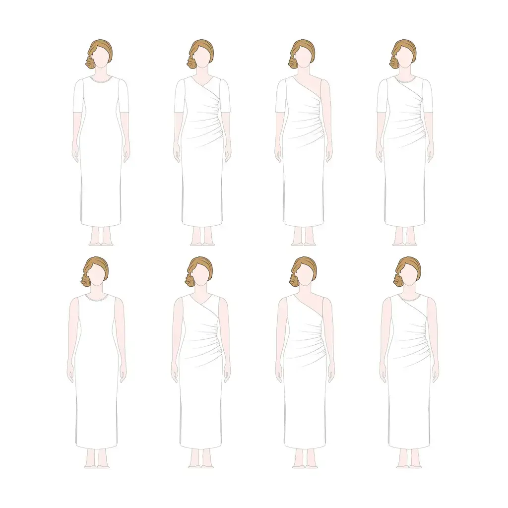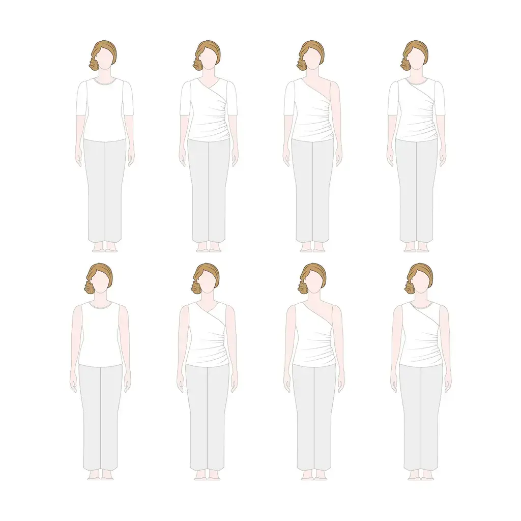 Maak essentials zoals aansluitende T-shirts met korte of lange mouwen, tanktops en comfy jerseyjurken voor elk seizoen, of ontwerp een opvallende feestelijke outfit met haar unieke panden, één-schoudervariant en optionele splitten. Een patroon dat je keer op keer kunt gebruiken in elk seizoen.