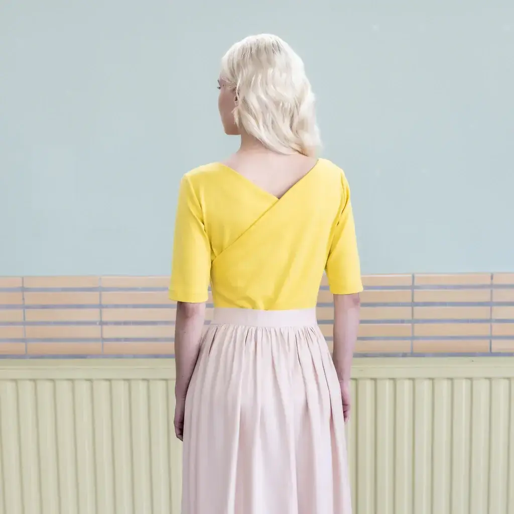 Met optionele hoge splitten en verschillende lengtes gaat Moriko moeiteloos van casual outfits naar glamoureuze avondlooks. Met haar slim ontworpen overlappen kun je eindeloos variëren. Of je nu kiest voor jersey of lichte, zeer elastische geweven stoffen, Moriko is een echte eyecatcher voor creatieve en gedurfde naai(st)ers!