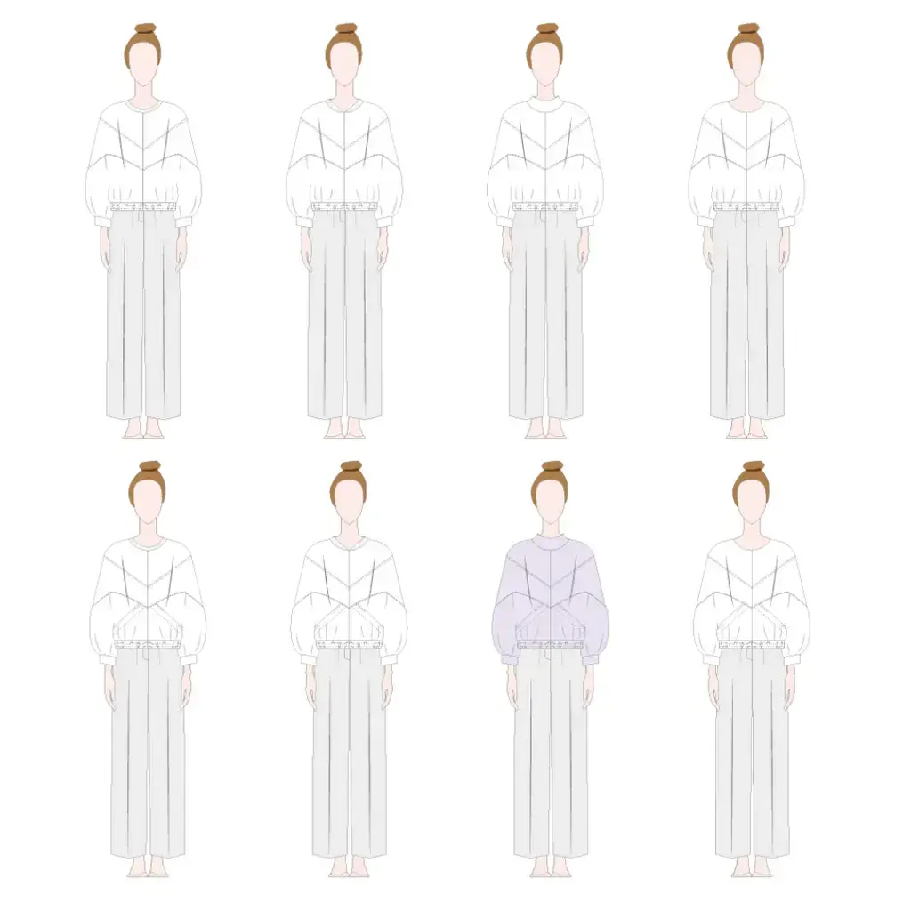 Rava is geïnspireerd op de typische felgekleurde trainingsjasjes uit de jaren 80. De belangrijkste kenmerken van het patroon zijn de diagonale naden, waardoor je kunt spelen met kleurblokken. Maar net zo leuk is het om hem in een effen kleur te maken en de diagonale naden te doorstikken, zodat het lijnenspel mooi tot zijn recht komt.