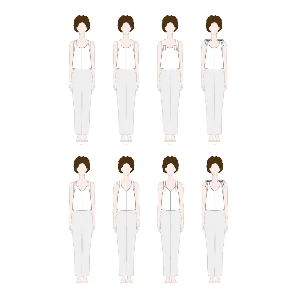 Draag haar als een luchtige zomertop, een korte alledaagse overgooier-jurk of ga voor een maxi-versie met extra flair. Voeg zijsplitten toe voor meer bewegingsvrijheid of hou het simpel en elegant. De diepe, ronde uitsnijding op de rug zorgt voor een verfijnd accent, en de optionele middennaden voor- en achteraan bieden ruimte voor sierstiksels — ideaal bij effen stoffen.