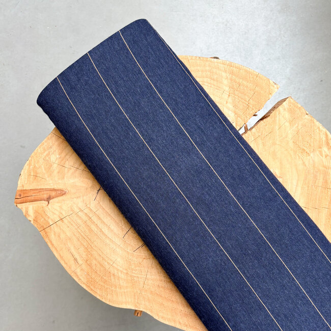 Een viscosestof in een prachtige denimloon met lurex streepje.