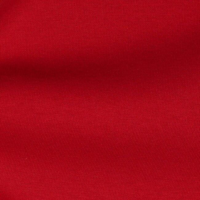 Een aangename dikkere sweaterstof die lichtjes rekbaar is (voldoende om als sweater te gebruiken). Hij heeft een zeer zachte binnenkant en een mooi egale buitenkant.