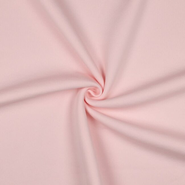 Een aangename dikkere sweaterstof die lichtjes rekbaar is (voldoende om als sweater te gebruiken). Hij heeft een zeer zachte binnenkant en een mooi egale buitenkant.