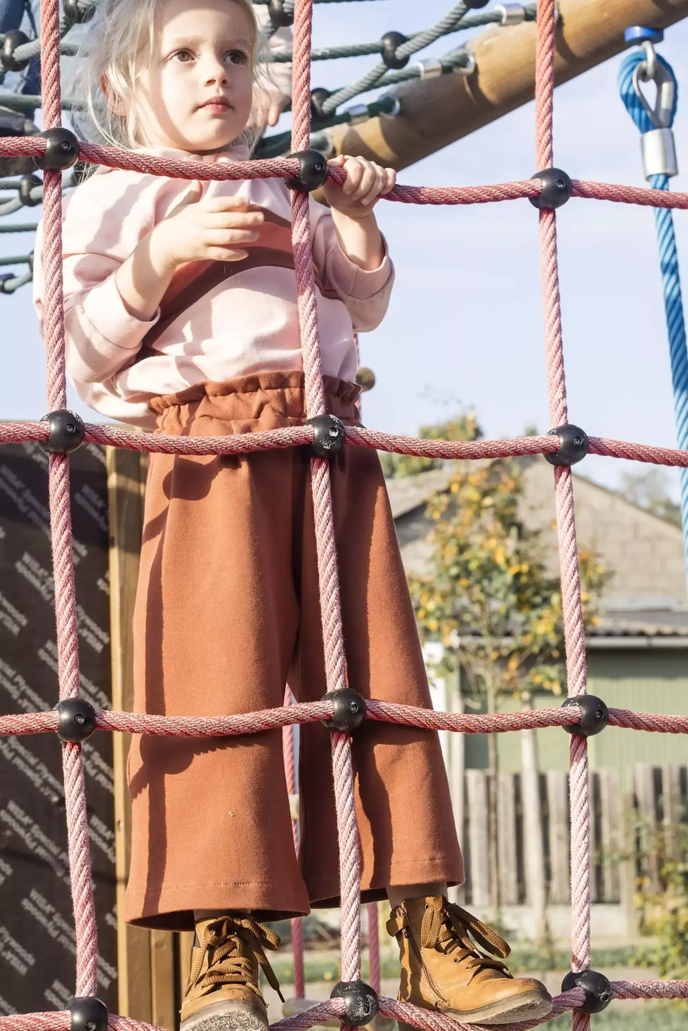 Kies voor (linnen-)viscose, gabardine, tencel, zijde of blousestof voor een aangename en goed doorvallende broek. Of ga voor een dikkere stof zoals babyrib, corduroy of jeans. Voor een frisse lentebroek kan je evengoed katoen gebruiken natuurlijk. Maar ook rekbare stoffen zijn uiterst geschikt voor dit patroon. Nicky velours, tricot, french terry of rekbare spons zijn ideaal om je Clara heerlijk stoer te maken.