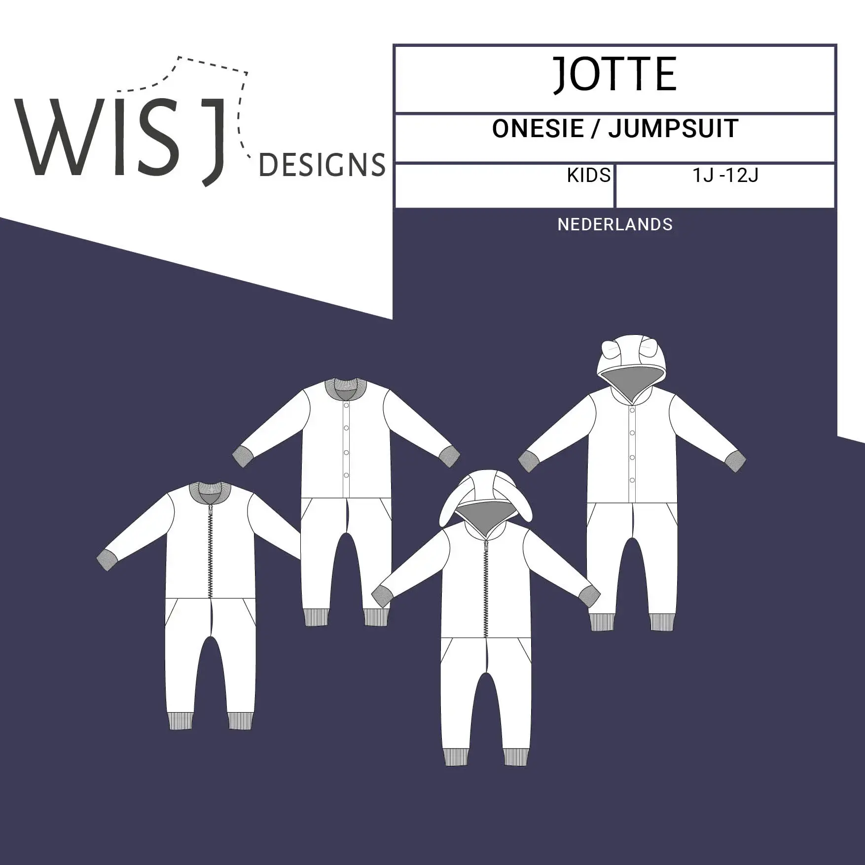 Jotte is een naaipatroon voor een onesie. Een eenvoudige pyjama met halsboordje uit boordstof? Of een ‘kostuum’ met kap en oortjes. Verkleed als konijn of beer.